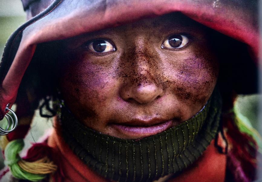 王瑤是第五屆范長江新聞獎獲得者。圖為2019年8月15日,她拍攝的是西藏一位臉上涂“土恰”的姑娘。“土恰”是她們用煙垢自制的防曬美容霜。