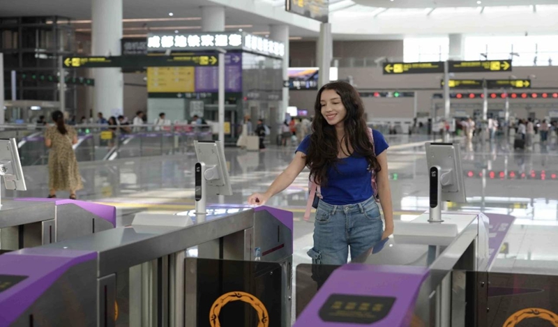 薩爾瓦多游客Maria在天府國際機場刷境外萬事達卡乘坐成都地鐵。