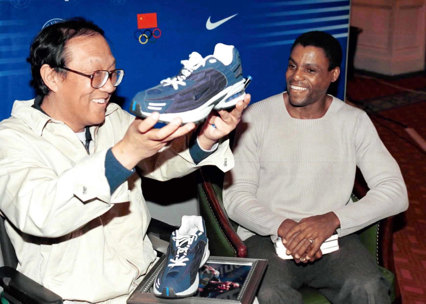 2001年3月20日,史鐵生(左)與美國(guó)田徑運(yùn)動(dòng)員劉易斯在北京相會(huì)。劉易斯將有自己簽名的照片和運(yùn)動(dòng)鞋送給史鐵生,史鐵生送給劉易斯自己的一套文集。(新華社記者 陳曉偉/攝)