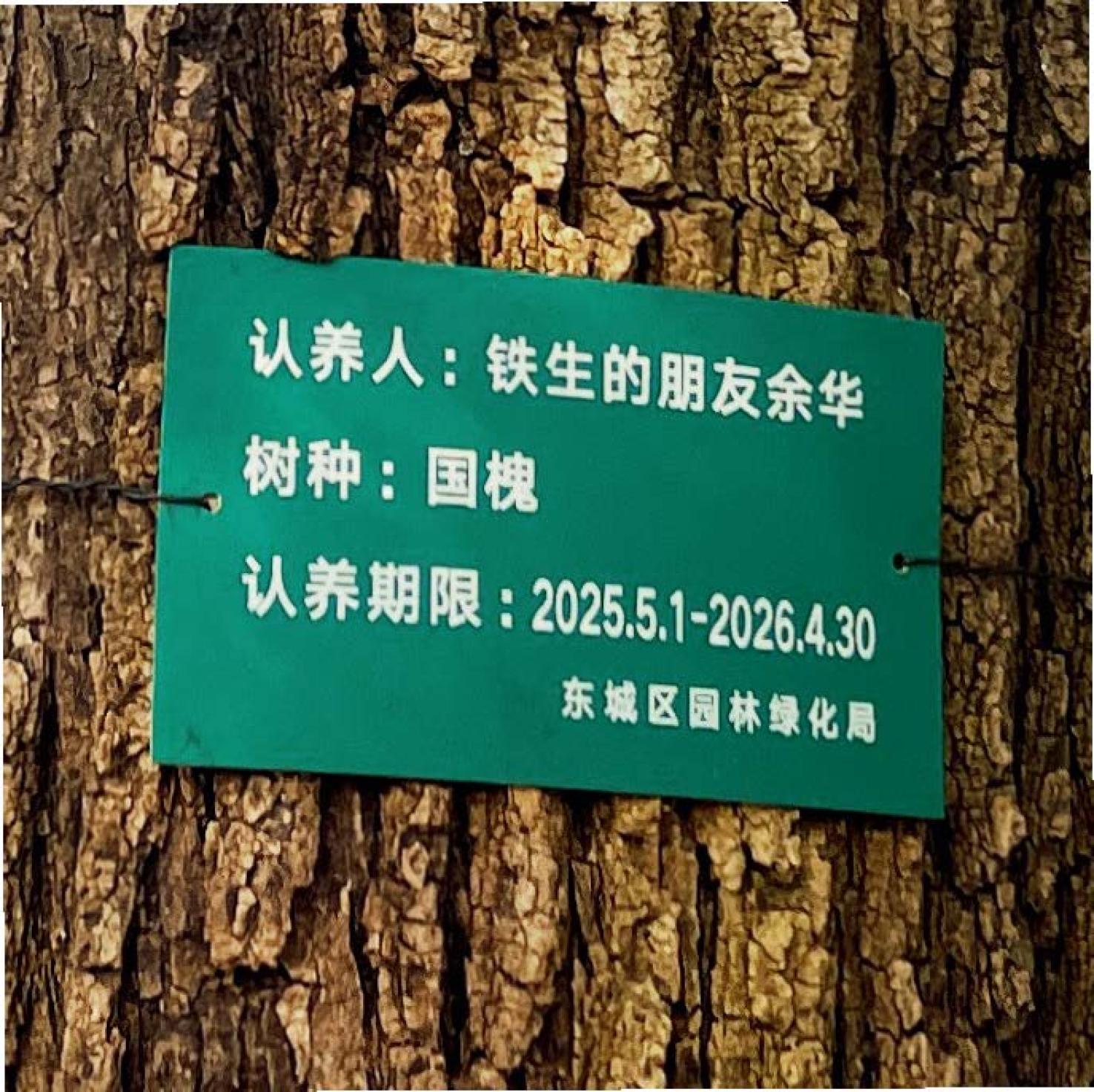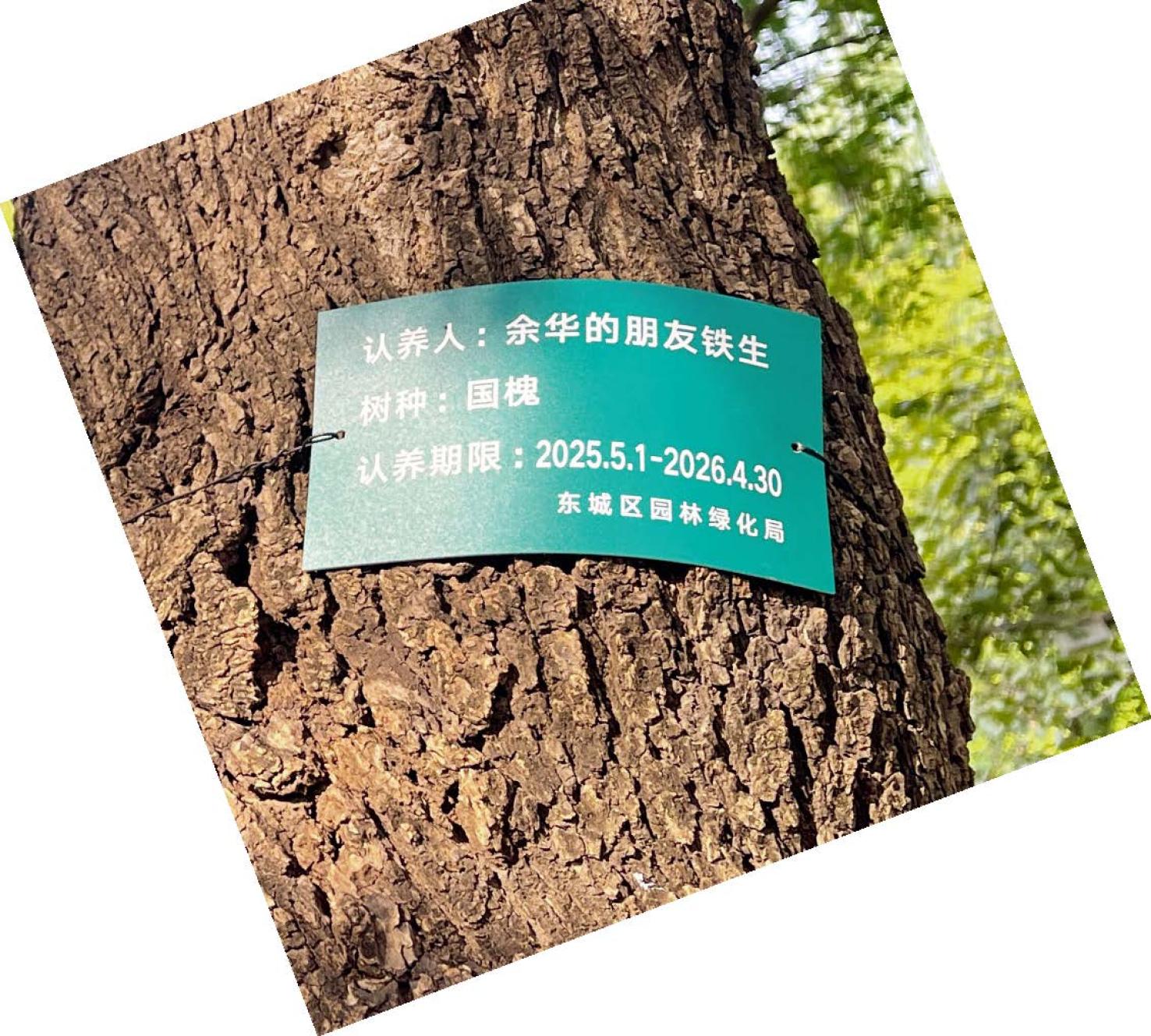 游客認養的兩棵國槐樹,一棵上面寫著“認養人:余華的朋友鐵生”,另一棵寫著“認養人:鐵生的朋友余華”,儼然已成為地壇的新景點。兩棵樹相距不過丈余,正可謂“根,緊握在地下;葉,相觸在云里”。兩棵樹的走紅,源自年輕一代對“偉大友誼”的情感共鳴。