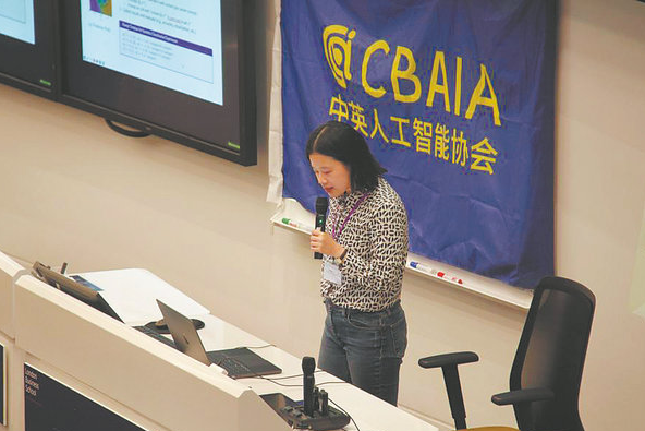 Li Yingzhen, associate professor at Imperial College's Department of Computing, speaks at the UK Women in AI Summit organized by the China-Britain Artificial Intelligence Association in London last month. [Photo/GAO WENCHENG/XINHUA]