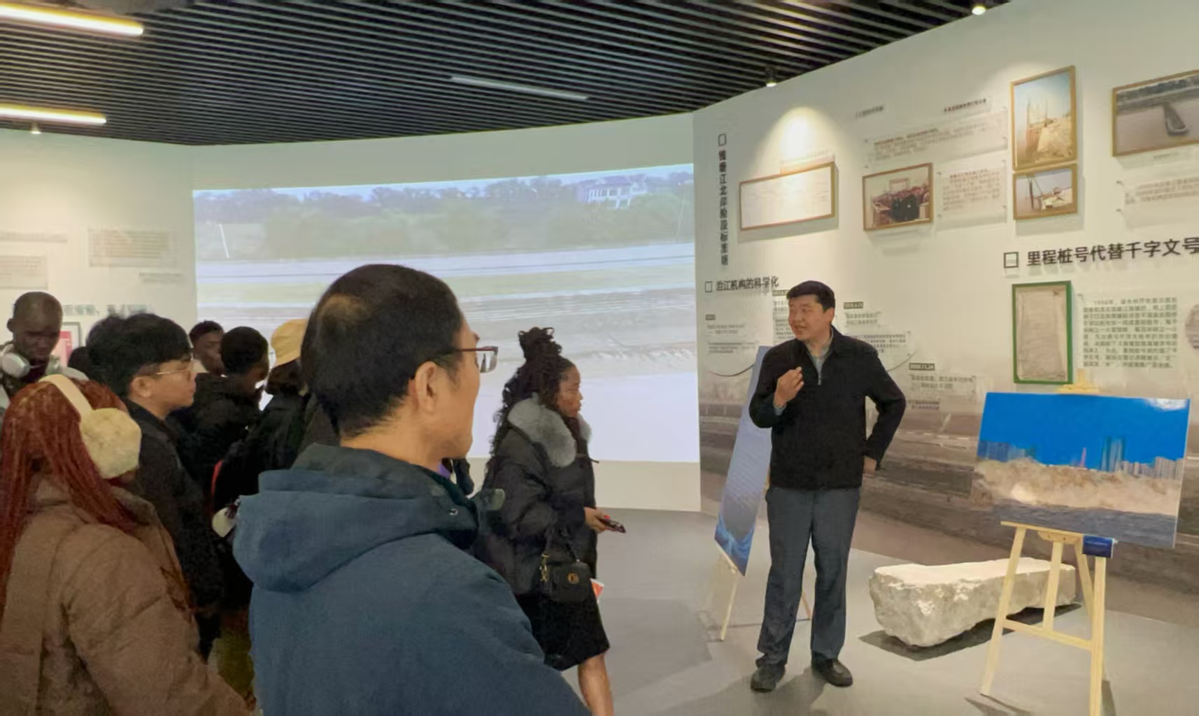 浙江省錢塘江流域中心與涌潮研究會工作人員詳細介紹了錢塘江海塘的建設歷程,從東漢筑塘、五代吳越王錢镠修筑“捍海塘”,到明清時期達到水利工程高峰的魚鱗石塘,再到當代安瀾海塘工程,展現了中華民族與潮汐共生、防災減災的智慧。工作人員還介紹了近年來錢江潮科考進展,通過水、陸、空一體化觀測,系統識別九種潮型,為涌潮保護與可持續利用提供科學依據。此外,“錢塘江海塘·潮文化景觀”自2019年列入《中國世界文化遺產預備名單》以來的申遺進展,也讓觀眾進一步認識到該遺產的重要價值。